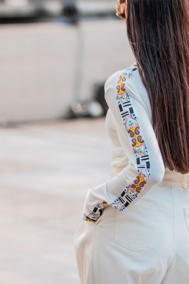 Estas prendas elaboradas sin el auxilio de maquinaria encajaron de forma creativa y elegante en los diseños de Pacheco, quien es oriundo de ese destino y deseaba resaltar sus raíces.