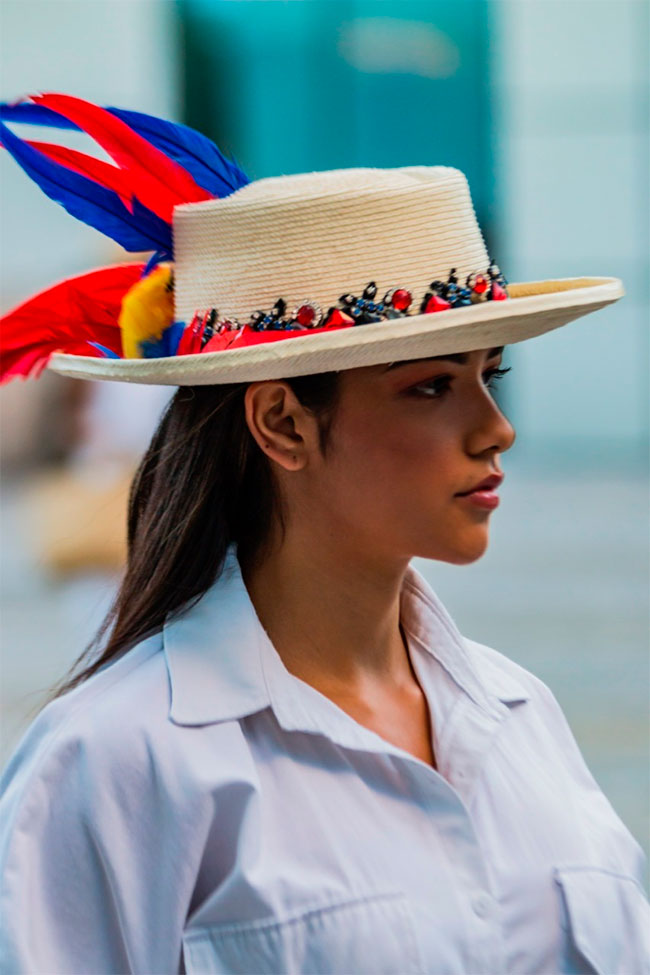 Algunos de los sombreros que portaron las modelos de Deco-libryhn llevaban la hermosa Ave Nacional, la guara roja, mediante una hermosa decoración de plumas que le dieron un toque catracho.