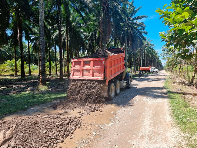 2. Programa de mantenimiento de carreteras: Entrega de material para la reparación de la calle principal de la comunidad de Los Cocos y Zoilabé en Tela.