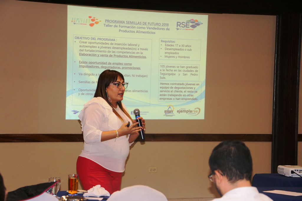 La licenciada Sonia Mejía, expresó: “Dentro de mi experiencia en Grupo Jaremar puedo compartirles que hemos tenido alianzas muy exitosas como es el caso de la alianza con FOPRONH de la cooperación alemana, GIZ, CADERH y Génesis – FUNADEH con los cuales creamos todo el esquema desde el 2015 de nuestro exitoso programa “Semillas de Futuro”, el cual promueve la formación de Jóvenes en competencias y habilidades como vendedores de productos alimenticios y su inclusión laboral”.
