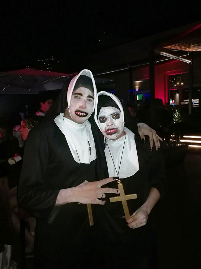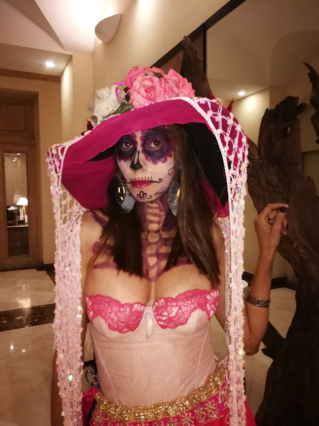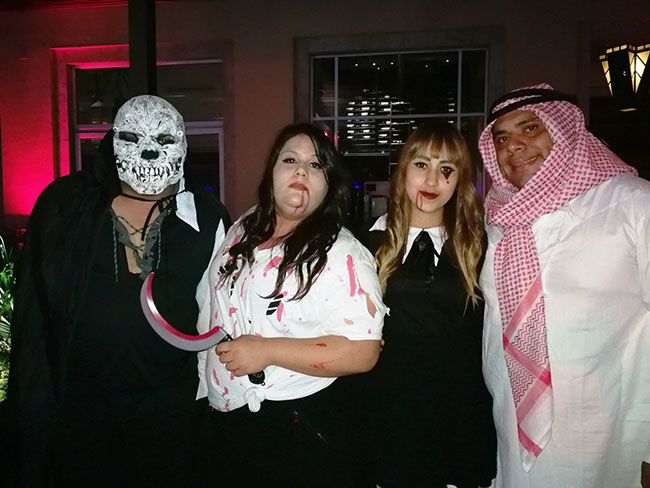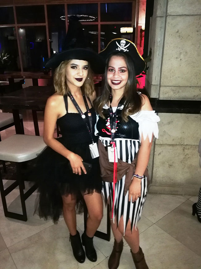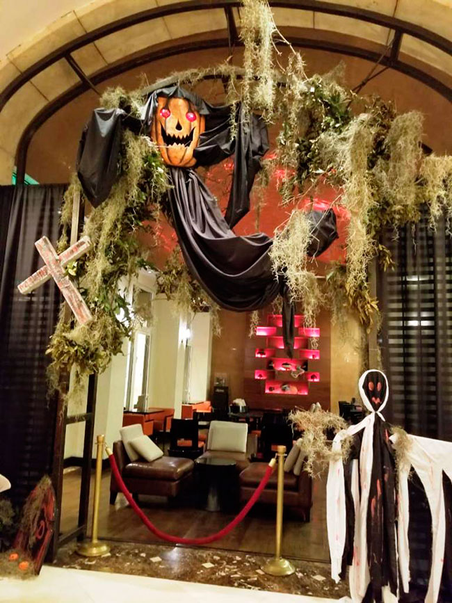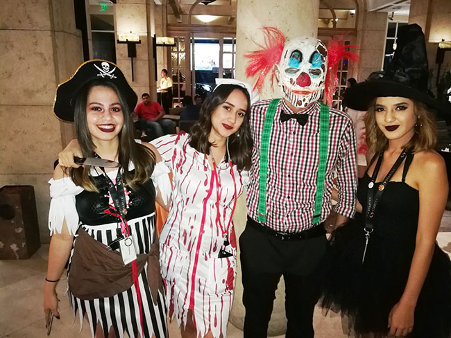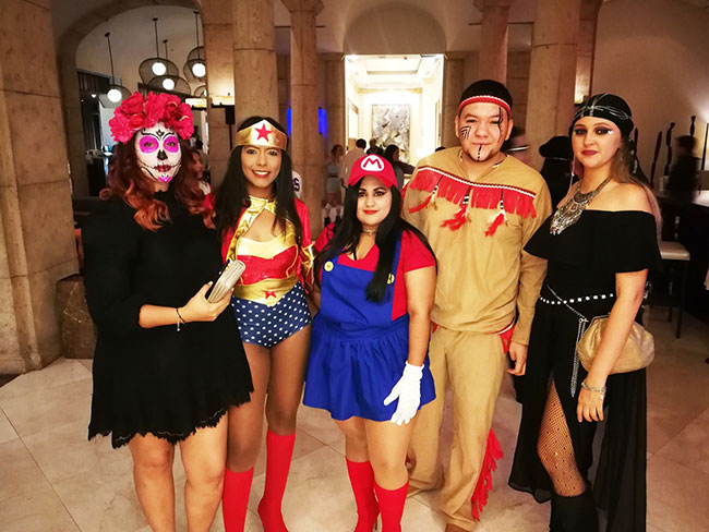 El hotel fue decorado propio de la ocasión con telarañas calaveras, lápidas y divertidos personajes que dieron la bienvenida.