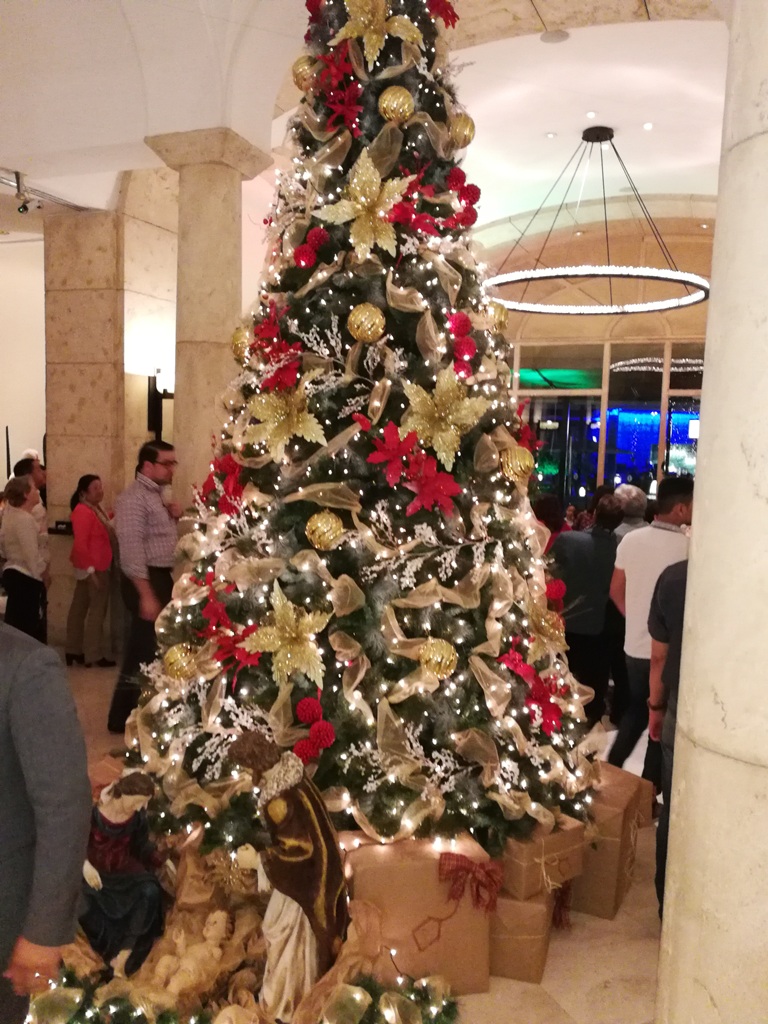 Finalizadas las palabras de agradecimiento, todos en el lobby del hotel comenzando la cuenta regresiva, hasta el encendido del árbol.