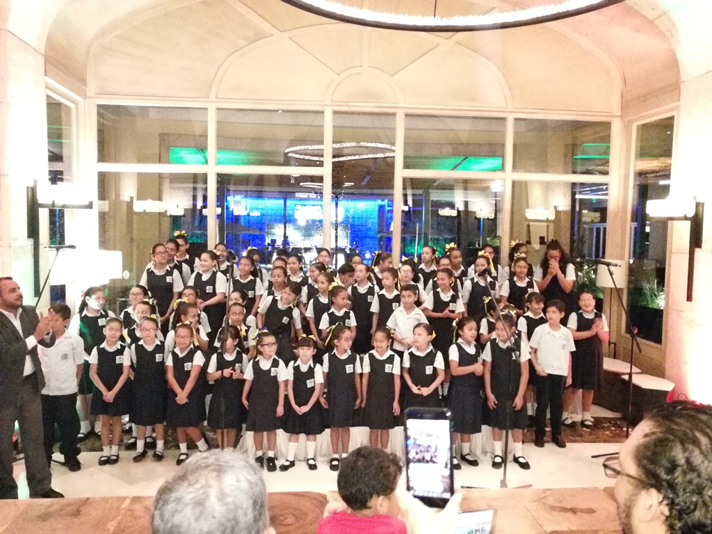 Pasadas las 5 de la tarde, el coro de Niños de La Estancia School se colocaron en sus posiciones para ofrecer un hermoso espectáculo de voces angelicales.