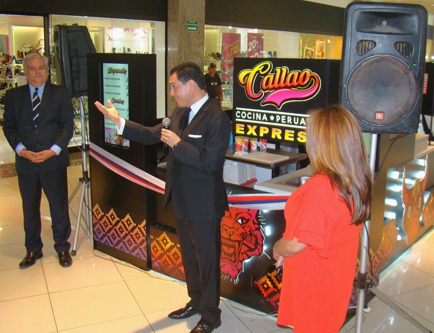 El conocido exembajador de Perú en Honduras Guillermo González Arica, inauguro “Callao” Express en City Mall de Tegucigalpa, el cuarto de los cinco locales de la cadena de restaurantes de comida rápida peruana.