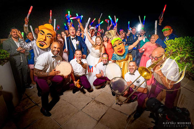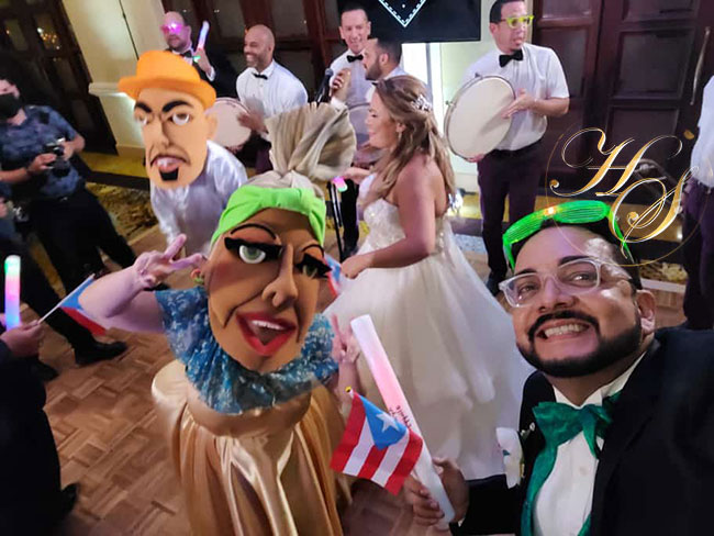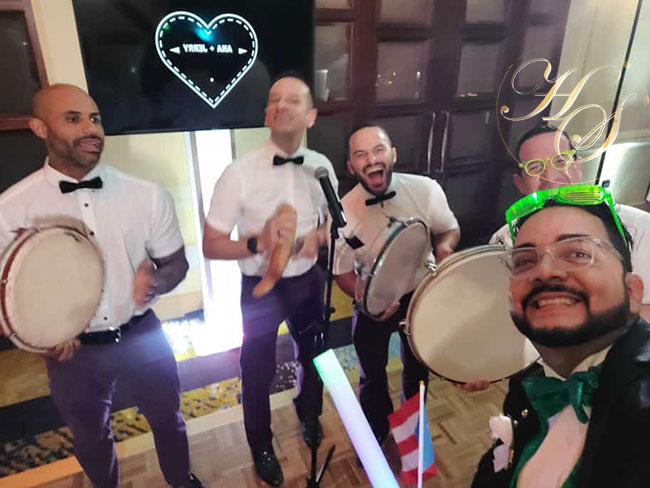 Seguido de la deliciosa cena se relizo un show de fuegos pirotécnicos animados por el show de musica y bailes tradicionales de Puerto Rico a cargo de «Pleneros de Yuvi Plena» y juntos celebraron una alegres carnaval por la felicidad de los nuevos esposos que actualmente disfrutan de su luna de miel por bellos parajes de la Isla del Encanto.