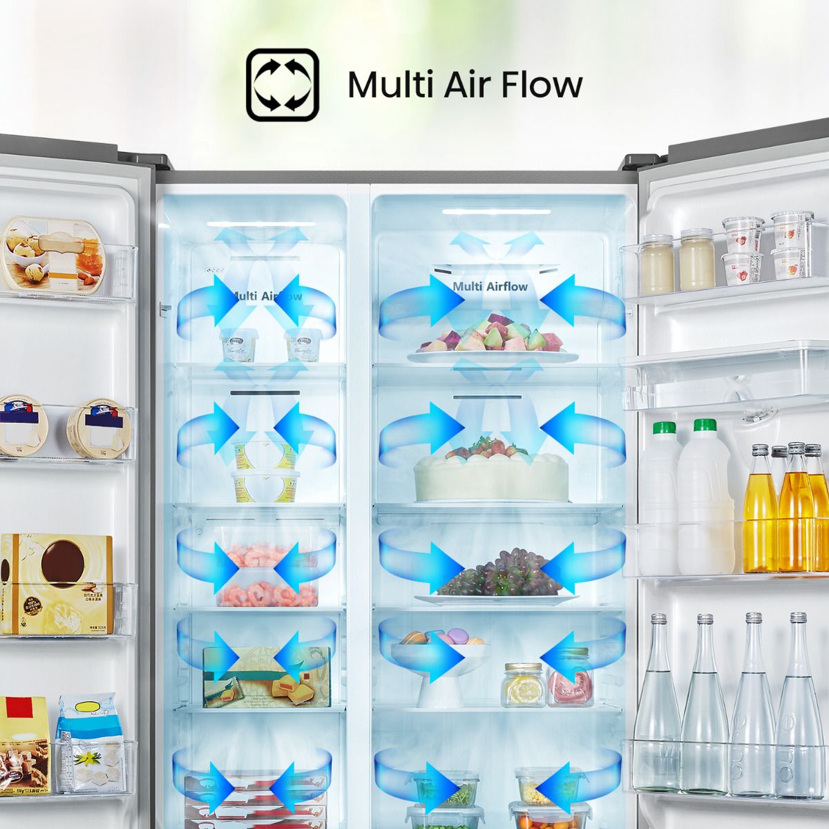 - Refrigeradora Hisense Side by Side de 18 pies cúbicos: combina un diseño elegante con funcionalidades avanzadas que incluyen control electrónico de temperatura, distribución uniforme de aire frío para mantener tus alimentos frescos, tecnología Total No Frost y una iluminación LED eficiente. A su vez, su dispensador de agua, el cajón de anchura completa y la superficie mate cepillada agregan un toque moderno y práctico.
