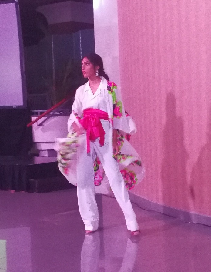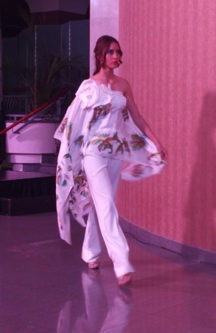 La conocida diseñadora presentó una bella colección de atuendos y túnicas llenas de su característico y elegante estilo realizadas en finas telas, con llamativos colores de temporada.