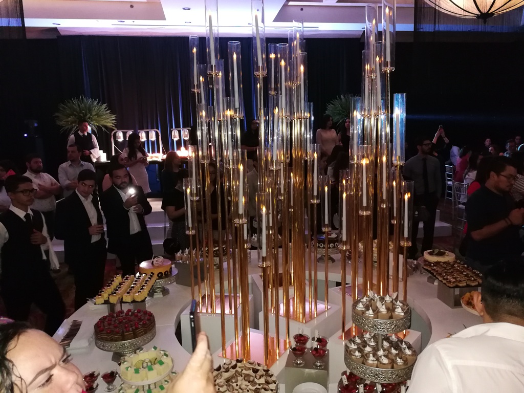La sorpresa de la noche fue al abrir los salones del hotel y encontrar un montaje moderno, con propuesta de servicio para eventos muy de moda y diferente, que rompen esquemas de los eventos tradicionales, montaje que estuvo a cargo de Fabiola Matamoros.