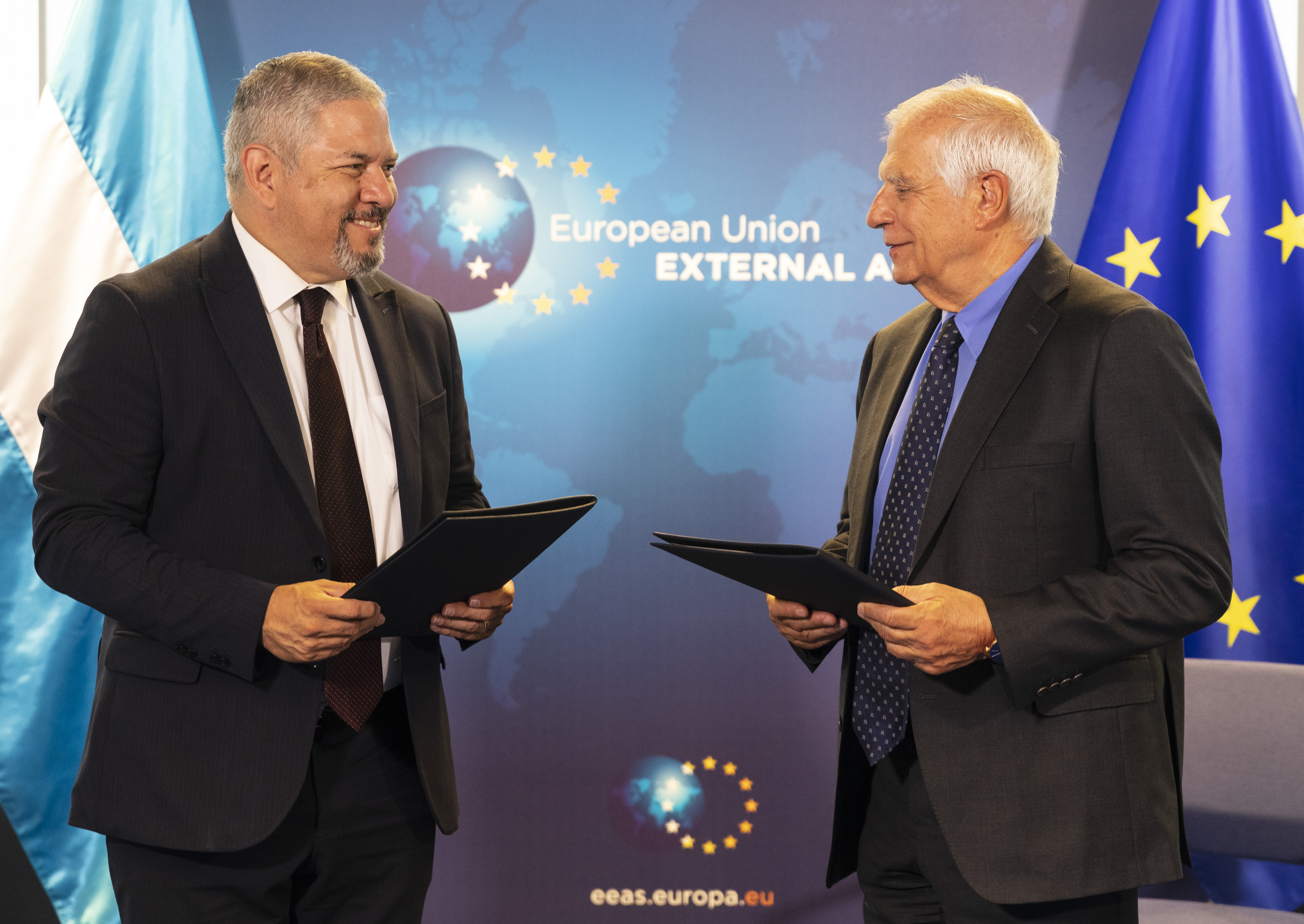 En el marco de la Cumbre UE-CELAC, el Alto Representante de la Unión Europea para Asuntos Exteriores y Política de Seguridad, Josep Borrell, y el Canciller de Honduras, Enrique Reina, firmaron el Memorando de Entendimiento sobre consultas bilaterales Unión Europea – República de Honduras.