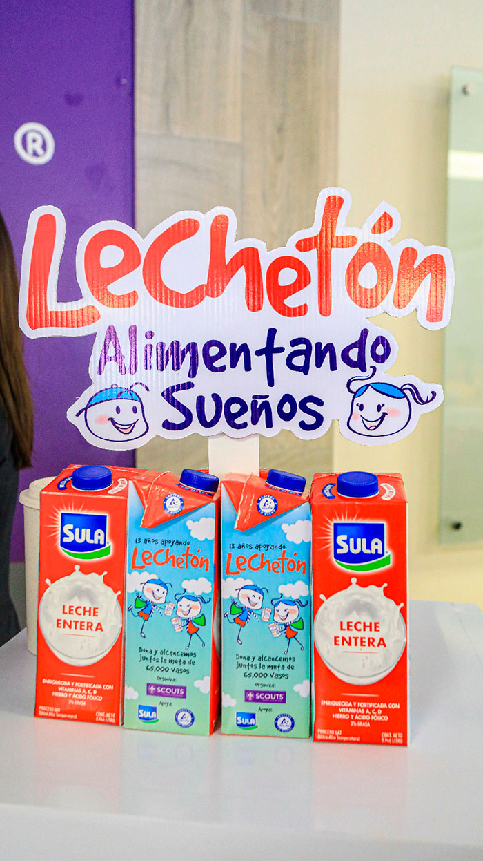Lechetón, es un proyecto social que tiene como objetivo dotar de leche a más de 70 instituciones benéficas que brindan apoyo a miles de niños, niñas y adultos mayores en Honduras. En esta décimo tercera edición, Sula y Tetra Pak nuevamente se unen para apoyar a la Asociación Scouts y recolectar durante un fin de semana la mayor cantidad de leche Sula en envases de Tetra Pak, con el slogan ¡ALIMENTANDO SUEÑOS!