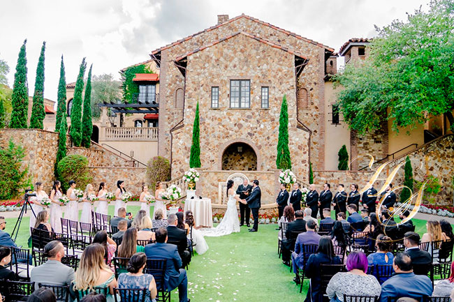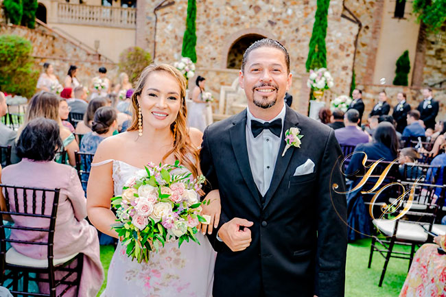 Para sellar y celebrar su amor la feliz pareja escogió un romántico escenario Bella Collina, un exclusivo y lujoso destino para bodas ubicado al Sur de Orlando, Florida, la arquitectura es de un Castillo de la Toscana Italiana, donde la ceremonia Cristiana, fue dirigida por el Pastor Kenton Brake.