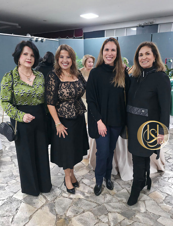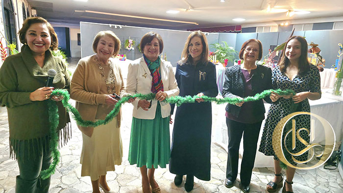 La presidenta del Club, Edith de Flores, fue la encargada de inaugurar el evento, acompañada por Carla Suárez, directora de la exposición, y Sonia Matilde Fiallos de Flores Gómez, quien realizó el corte de cinta.