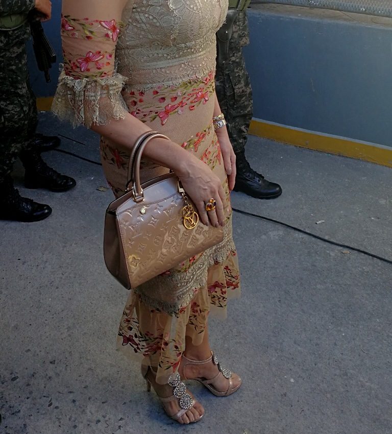Otras damas lucieron sus propias inspiraciones predominando los colores claros como el beige, blanco, azul, tabaco así colores fuertes, complementados con delicados y sofisticados accesorios como ser carteras, lentes, zapatos y joyerías de conocidas marcas internacionales.