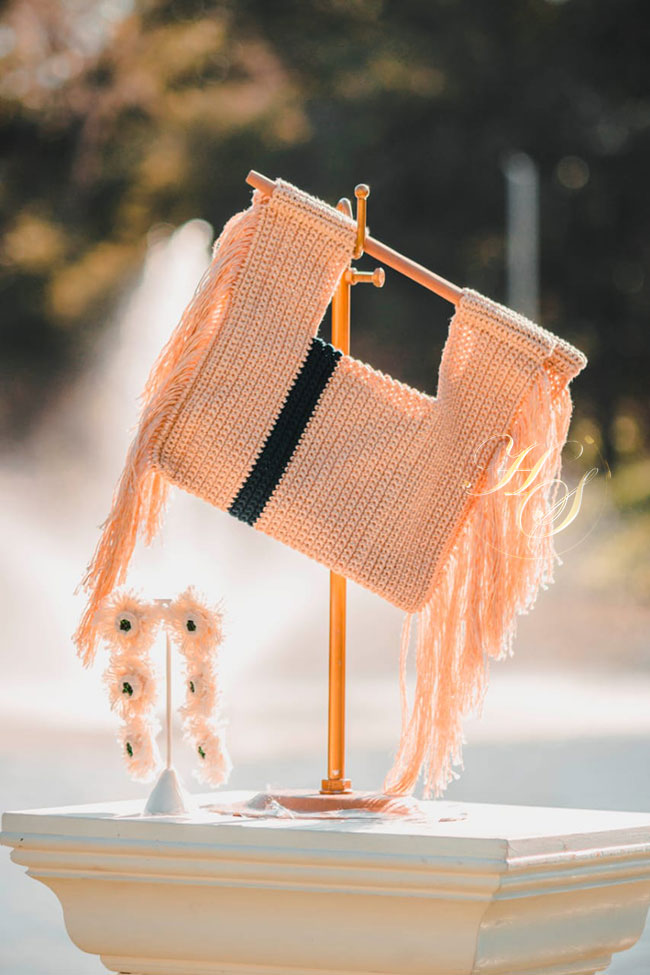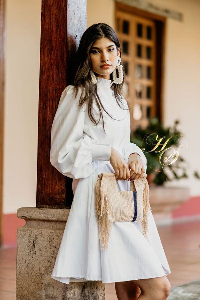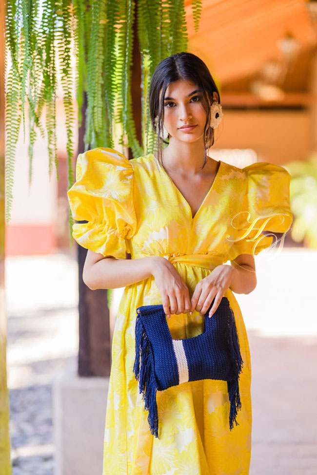 En esta nueva colección predominan texturas como lino, algodón, bordados a mano con el nuevo vibe sreet couture donde podrán apreciar aretes en algodón reciclado dando entrada a la moda sostenible en la marca, detalles de madera y carteras geométricas en lino y crochet .