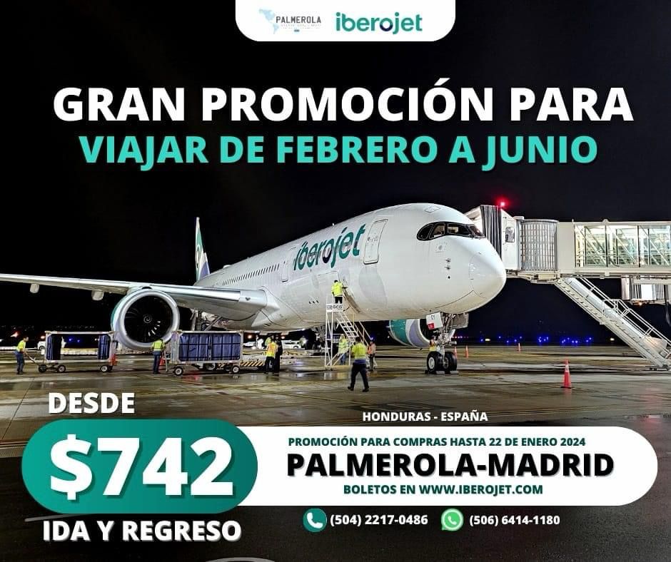 IBEROJET tiene en promoción los vuelos directos de Honduras a España desde Palmerola ✈🇭🇳🇪🇸