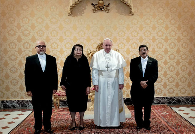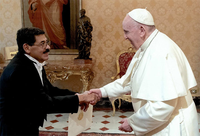 Ciudad del Vaticano. El Papa Francisco recibió las cartas credenciales del nuevo Embajador de Honduras ante la Santa Sede, Carlos Cordero Suarez, en ceremonia realizada el pasado 19 de diciembre en el Palacio Apostólico.