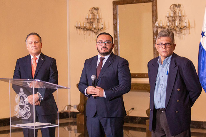 En la conferencia de prensa realizada en el Salón Morazán de Casa Presidencial, también participaron el secretario de Desarrollo Económico, Daniel Fortín y el director de la Comisión Administradora del Petróleo (CAP), Fernando Lobo.
