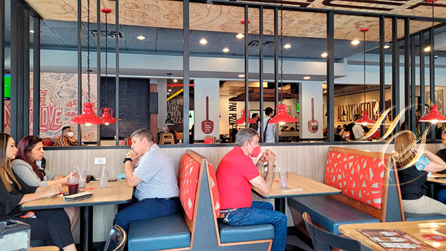 Nuevamente Pizza Hut, Sorprende a sus clientes con un nuevo Pizza Hut completamente remodelado con el objetivo de brindar una experiencia nueva y fresca a nuestros clientes, trasladandolo a la imagen PIZZA IS LOVE, la cuál emplea nuevos conceptos en acabados, decoración, sonido, iluminaciones y comodidad para los clientes.
