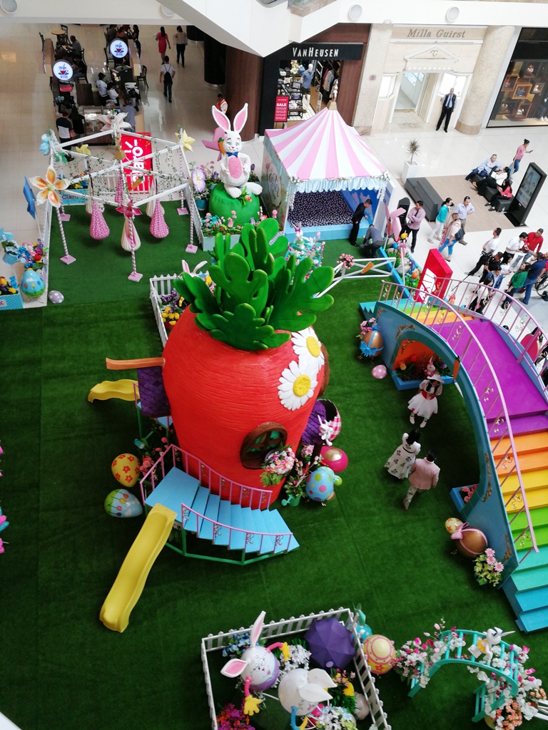 Easter Village es una zona para niños entre las edades de los 2-12 años en la cual ellos podrán disfrutar de múltiples actividades innovadoras como ser: manualidades, búsqueda de huevos de pascua, fotografías con el conejo de pascua y pinta caritas.