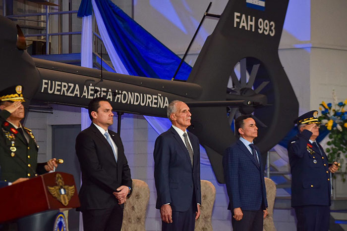La ceremonia de celebró en el hangar presidencial de la unidad militar, localizado en la base aérea Hernán Acosta Mejía, con la presencia del titular del Congreso Nacional, Tomás Zambrano; el jefe del Estado Mayor Conjunto de las Fuerzas Armadas, general Héctor Benjamín Valerio Ardón; el comandante general de la Fuerza Aérea Hondureña, general de brigada Walter Yanuario Paz López.