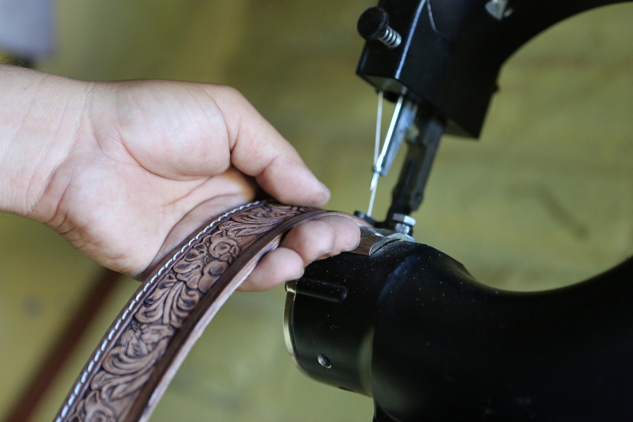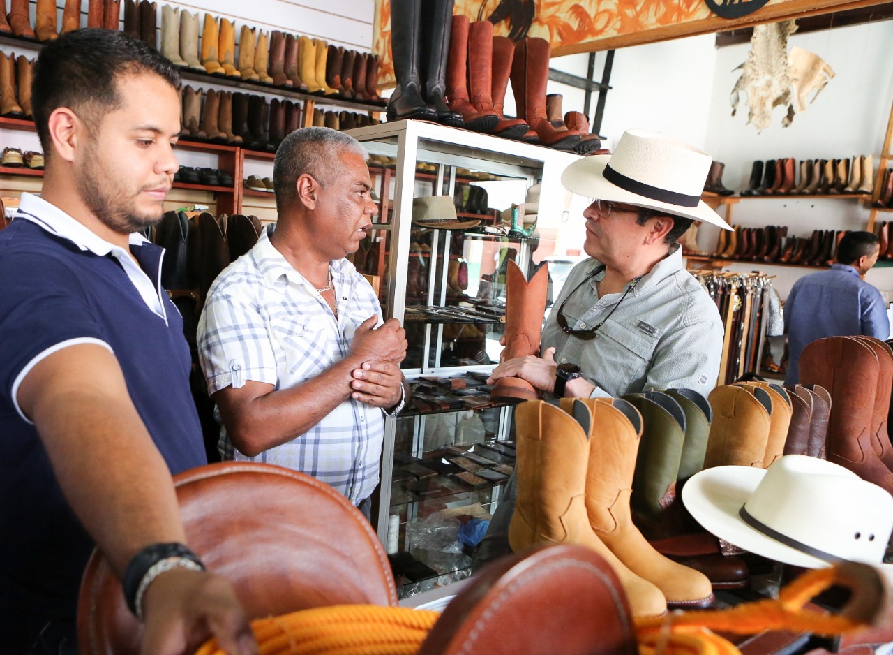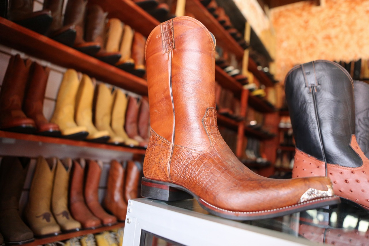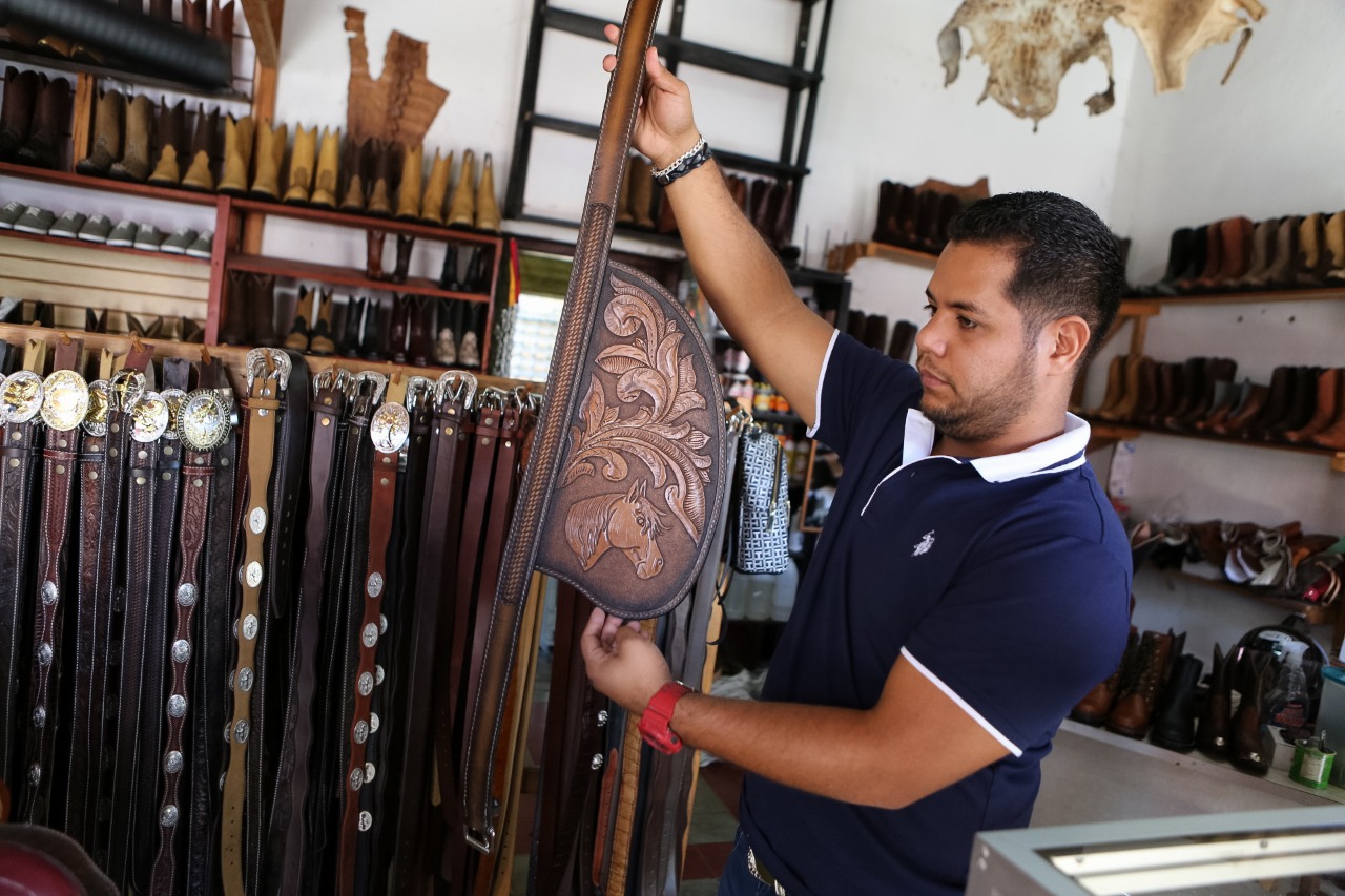 “Aquí pueden encontrar billeteras, carteras, fajas, botas, botines, monturas, pialeras, sombreros, gorras, una variedad para tiempo de verano”, anunció don Santos Orlando.