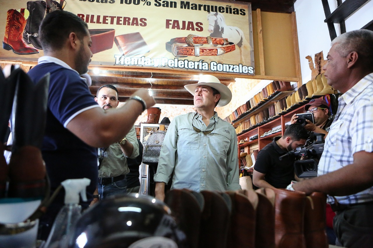 “Para nosotros es de gran honor y placer tener a nuestro Presidente en nuestro negocio”, dijo don Santos Orlando, quien además envió un mensaje a los hondureños y extranjeros: que “una vez que visiten San Marcos, que vengan al centro y visiten la tienda Gonzáles, donde se ofrece el trabajo en cuero y en suela con variedad y buenos precios”.