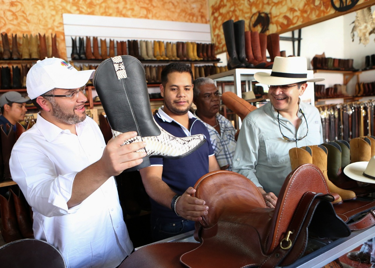 El presidente Hernández también visitó la tienda y peletería Gonzáles, una empresa familiar encargada de la elaboración de diferentes artículos de cuero que se fabrican incluso para personalidades hondureñas y extranjeras.