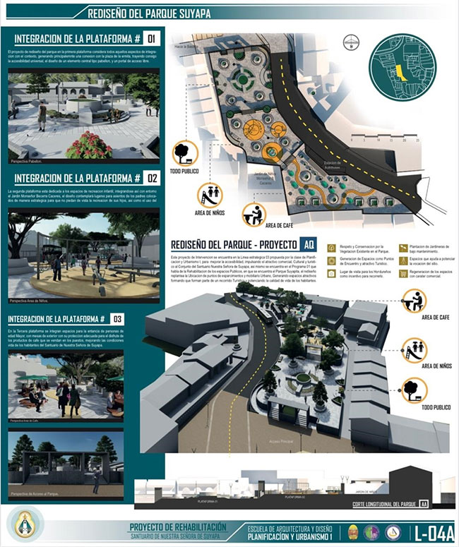 Tegucigalpa.- La construcción de obras de beneficio social y la implementación de iniciativas integrales que contribuyan a la generación de oportunidades y el mejoramiento de la calidad de vida de los habitantes de las zonas de influencia, son algunas de las prioridades que contempla el “Proyecto de Recuperación y Rehabilitación del Espacio Urbano del Santuario de Suyapa”.