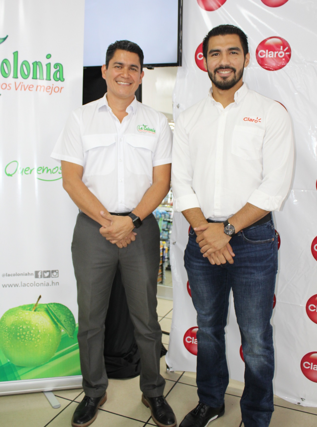 Harold Lovo, gerente de mercadeo de Supermercados La Colonia y Ricardo Stout, representante de Claro