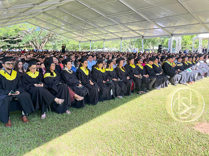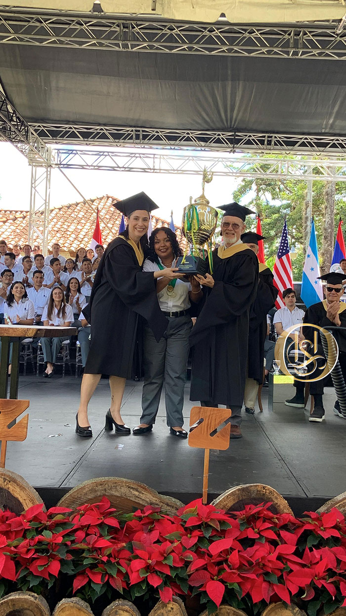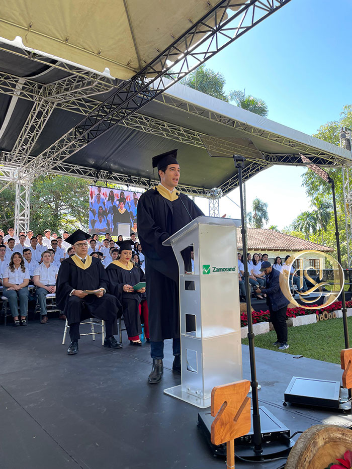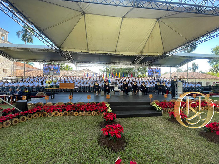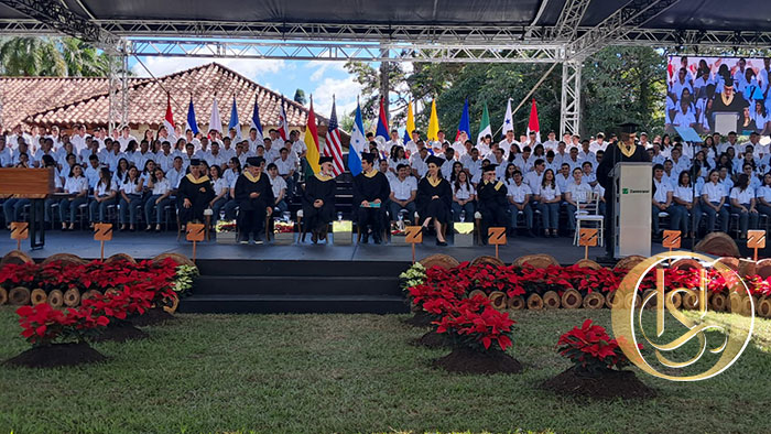 Durante la ceremonia, los directores de departamento hicieron entrega de los títulos a los graduandos, acompañados por el equipo académico y autoridades universitarias. El programa incluyó mensajes especiales de representantes estudiantiles, del Rector Interino Keith Andrews, del orador principal Danilo Carrera y del copresidente de la Junta de Fiduciarios, Richard Voswinckel, así como la entrega de reconocimientos a la excelencia en el Aprender-Haciendo, mejores promedios, distinciones por carrera y méritos especiales de civismo y liderazgo.