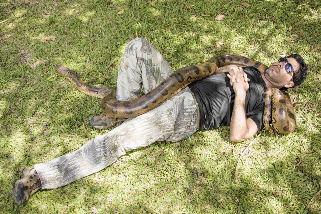 • El ser potencial más letal del Amazonas es una criatura tan colosal y poderosa la reina entre los demás la serpiente más enorme de la tierra, la Anaconda Verde, los adultos alcanzan los nueve metros y pesan alrededor de 200 kg. La famosa serpiente fotografiada y manipulada por Merlo, una bestia tan inmensa y varias ocasiones es prácticamente invisible entre la vegetación y las turbias aguas, viven en los trópicos sudamericanos desde Venezuela hasta el extremo sur del Amazonas