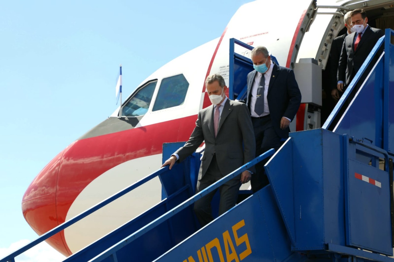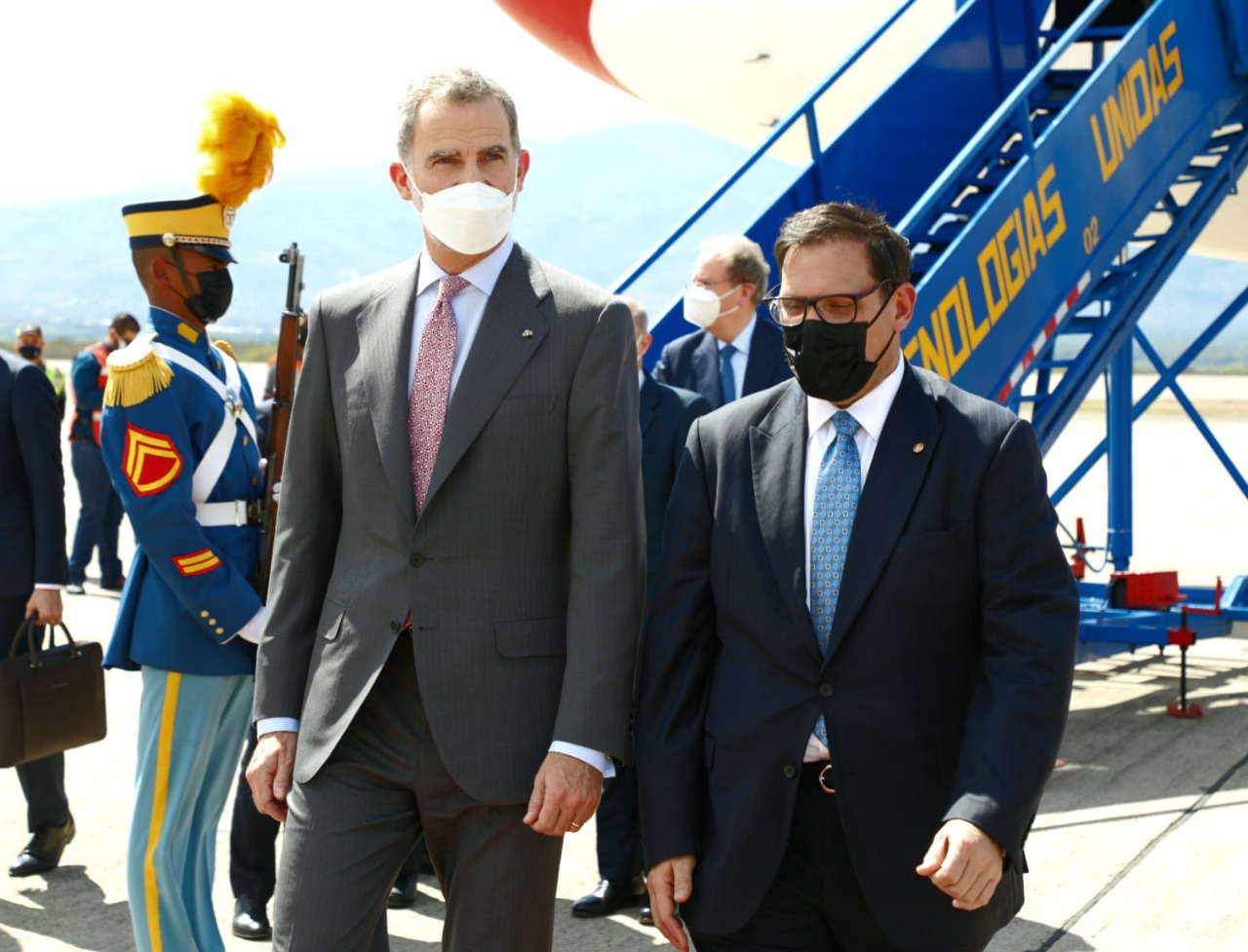 El Canciller encabezó la delegación del gobierno hondureño que recibió al rey español en la base aérea José Enrique Soto Cano, conocida como Palmerola.
