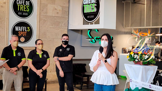 Por su parte, Annie Pineda, propietaria de Waffle Spot comentó: “Waffle Spot es nuestro Co-Brand que surge del menú que ya ofrecíamos en Café de Tres, luego de analizar las preferencias de nuestros clientes nos dimos cuenta de que nuestros waffles eran los preferidos por lo que decidimos innovar y abrir un Co – Brand con waffles insignia, reconocidos en cocinas internacionales y que ahora ofrecemos en nuestro espacio acogedor de Waffle Spot en Multiplaza, el mejor centro comercial de la ciudad”.