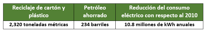 En el 2020, se lograron reciclar más de 35,600 toneladas métricas de cartón y plástico y se ahorraron más de 3,300 barriles de petróleo.