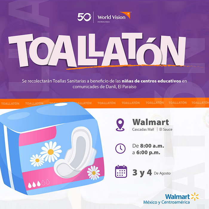 • World Vision Honduras y Walmart recolectarán toallas sanitarias en el “Toallatón 2024”